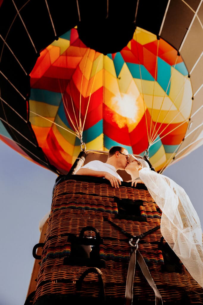 If you’re dreaming of unique elopement photography ideas, Katie and Jason’s post-elopement hot air balloon ride is all the inspiration you need.