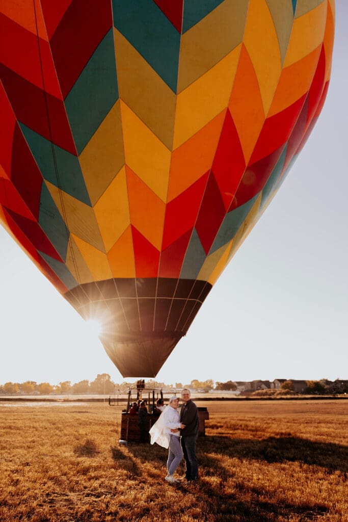 After their romantic Maroon Bells elopement in Colorado, Katie and Jason planned one final adventure to celebrate their wedding week — a sunrise hot air balloon ride near Denver. As their elopement photographer, I knew this was going to be something truly magical.
